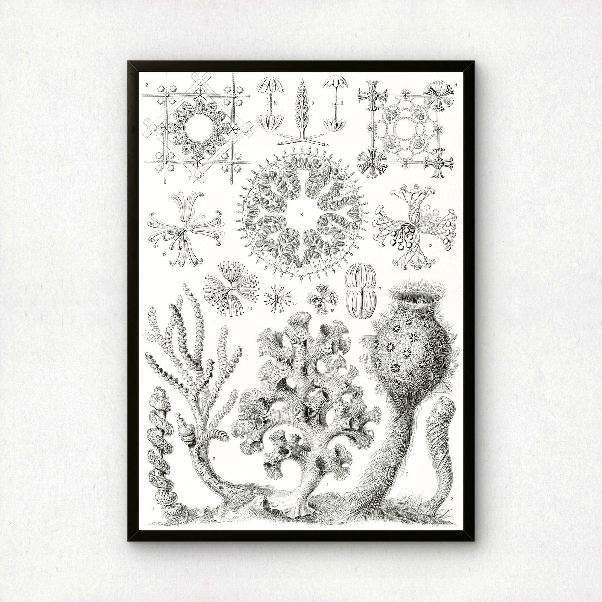 Haeckel's enduring work perfectly marries accuracy and imagination — detailed scientific records rendered with an artist's eye for colour, composition, and drama. His intricate patterns and bold use of colour feel strikingly contemporary, making century-old illustrations of diatoms and sea creatures look like they could hang in any modern space. Whether you're drawn to natural history, love bold graphic design, or simply want something genuinely unique on your walls, Haeckel's work delivers visual impact that never gets old.