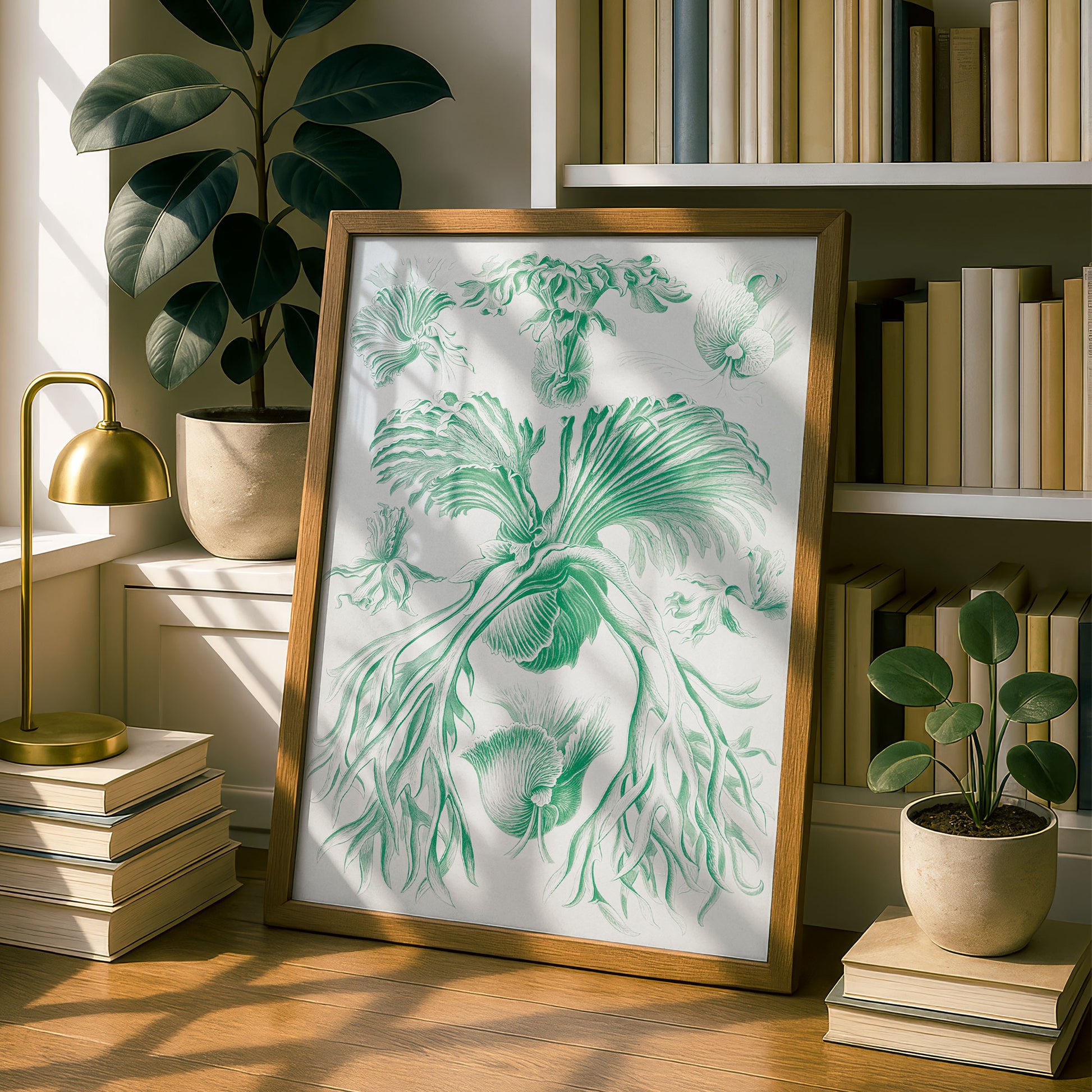 Haeckel's enduring work perfectly marries accuracy and imagination — detailed scientific records rendered with an artist's eye for colour, composition, and drama. His intricate patterns and bold use of colour feel strikingly contemporary, making century-old illustrations of diatoms and sea creatures look like they could hang in any modern space. Whether you're drawn to natural history, love bold graphic design, or simply want something genuinely unique on your walls, Haeckel's work delivers visual impact that never gets old.