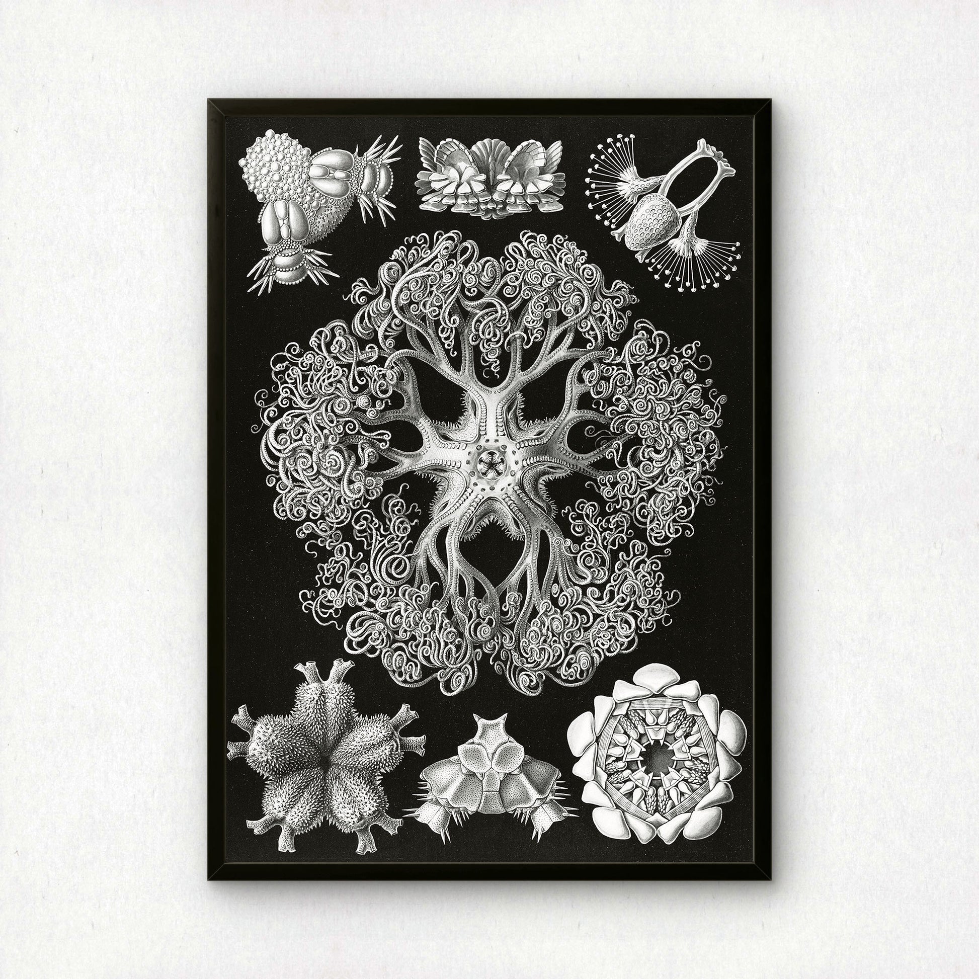 Haeckel's enduring work perfectly marries accuracy and imagination — detailed scientific records rendered with an artist's eye for colour, composition, and drama. His intricate patterns and bold use of colour feel strikingly contemporary, making century-old illustrations of diatoms and sea creatures look like they could hang in any modern space. Whether you're drawn to natural history, love bold graphic design, or simply want something genuinely unique on your walls, Haeckel's work delivers visual impact that never gets old.