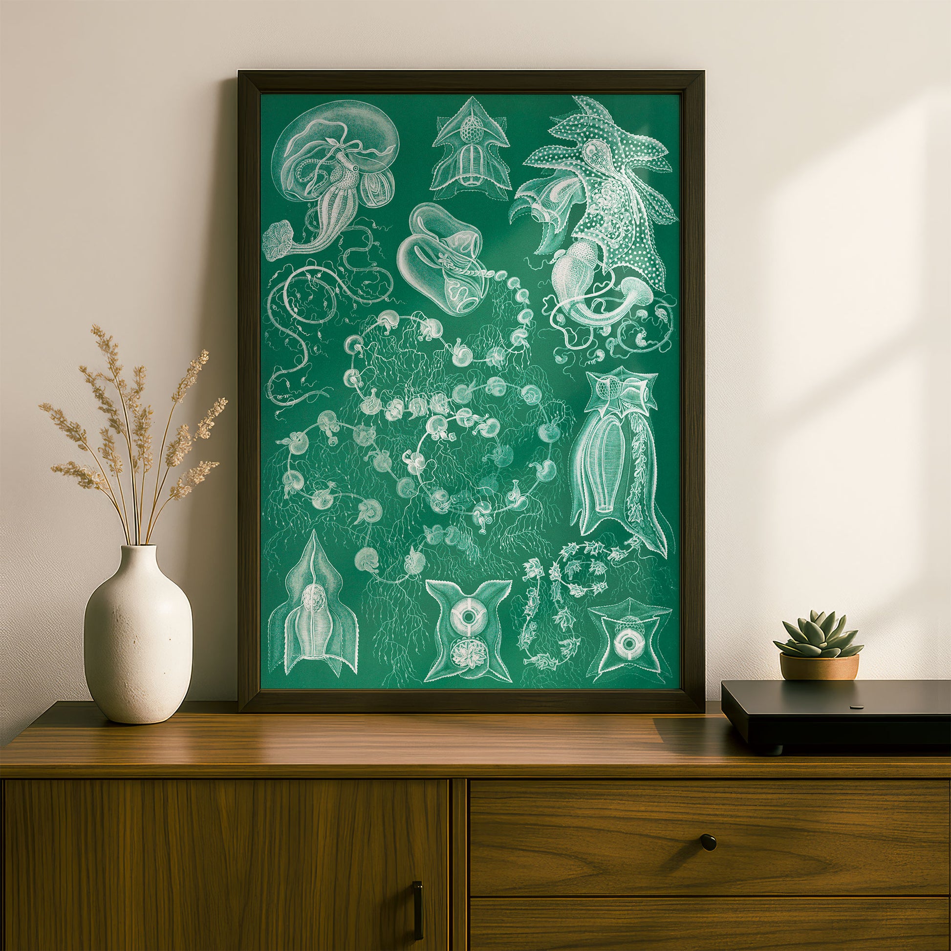 Haeckel's enduring work perfectly marries accuracy and imagination — detailed scientific records rendered with an artist's eye for colour, composition, and drama. His intricate patterns and bold use of colour feel strikingly contemporary, making century-old illustrations of diatoms and sea creatures look like they could hang in any modern space. Whether you're drawn to natural history, love bold graphic design, or simply want something genuinely unique on your walls, Haeckel's work delivers visual impact that never gets old.