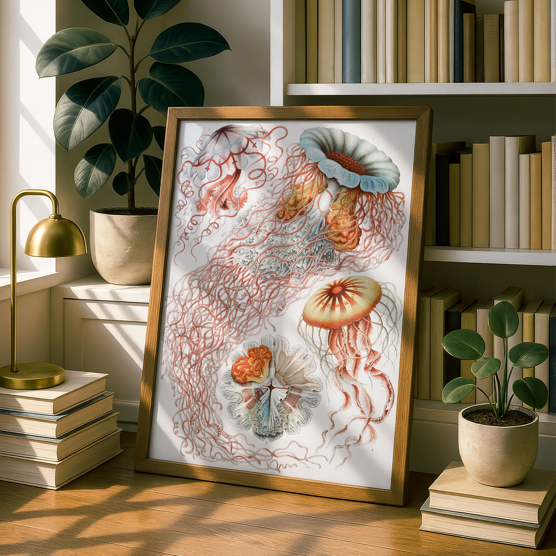 Haeckel's enduring work perfectly marries accuracy and imagination — detailed scientific records rendered with an artist's eye for colour, composition, and drama. His intricate patterns and bold use of colour feel strikingly contemporary, making century-old illustrations of diatoms and sea creatures look like they could hang in any modern space. Whether you're drawn to natural history, love bold graphic design, or simply want something genuinely unique on your walls, Haeckel's work delivers visual impact that never gets old.