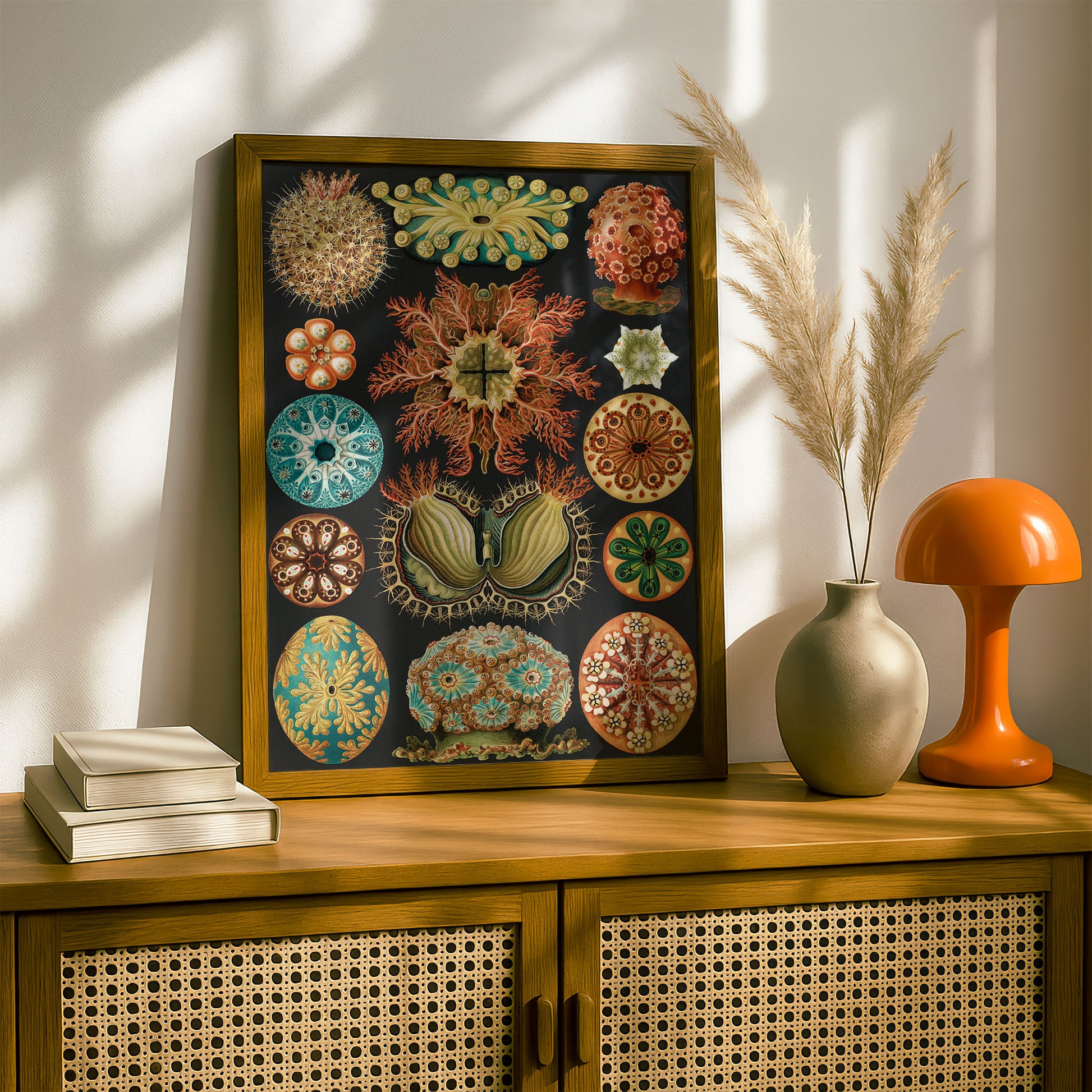Haeckel's enduring work perfectly marries accuracy and imagination — detailed scientific records rendered with an artist's eye for colour, composition, and drama. His intricate patterns and bold use of colour feel strikingly contemporary, making century-old illustrations of diatoms and sea creatures look like they could hang in any modern space. Whether you're drawn to natural history, love bold graphic design, or simply want something genuinely unique on your walls, Haeckel's work delivers visual impact that never gets old.