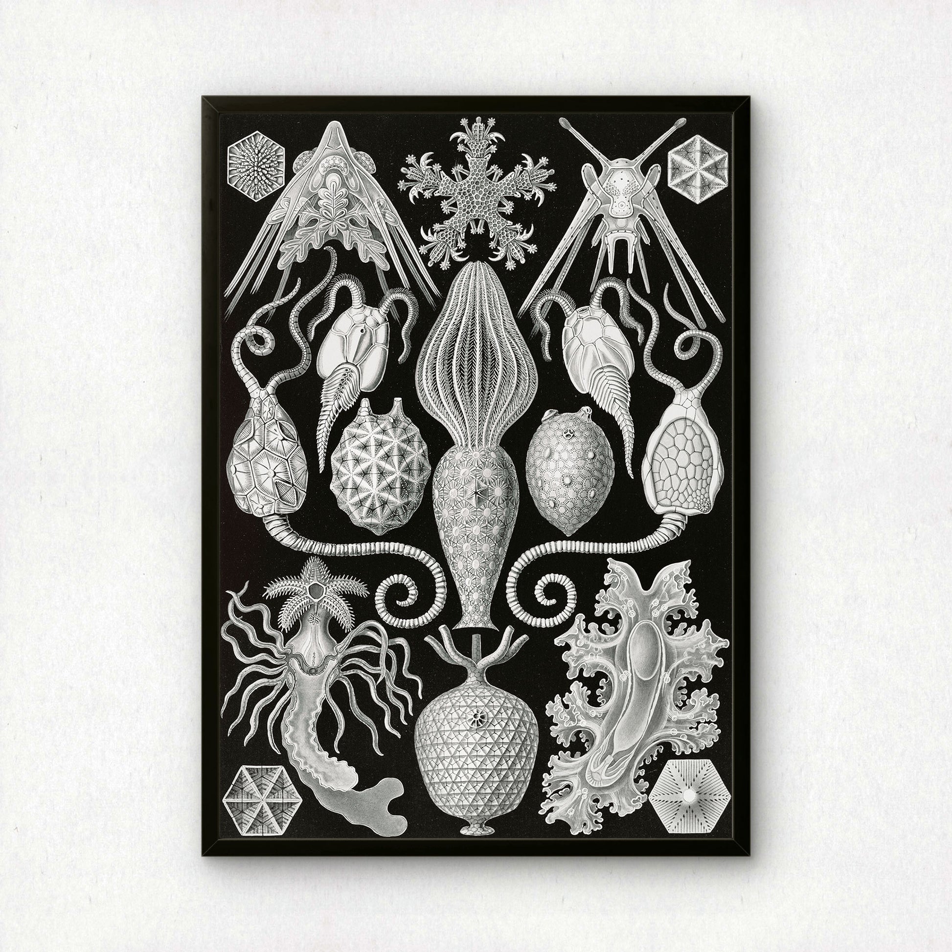Haeckel's enduring work perfectly marries accuracy and imagination — detailed scientific records rendered with an artist's eye for colour, composition, and drama. His intricate patterns and bold use of colour feel strikingly contemporary, making century-old illustrations of diatoms and sea creatures look like they could hang in any modern space. Whether you're drawn to natural history, love bold graphic design, or simply want something genuinely unique on your walls, Haeckel's work delivers visual impact that never gets old.
