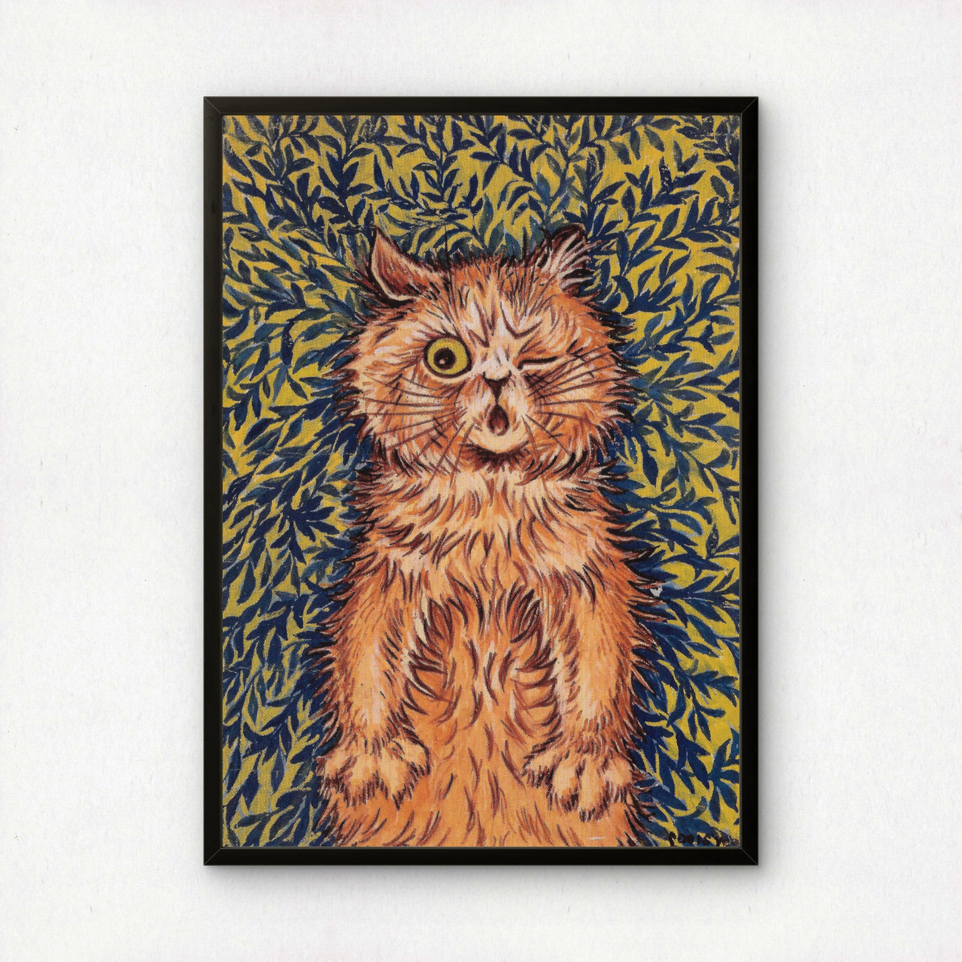 Louis Wain: Winking Ginger Cat in Leaves | Fine Art Giclée Print | Playful Poster