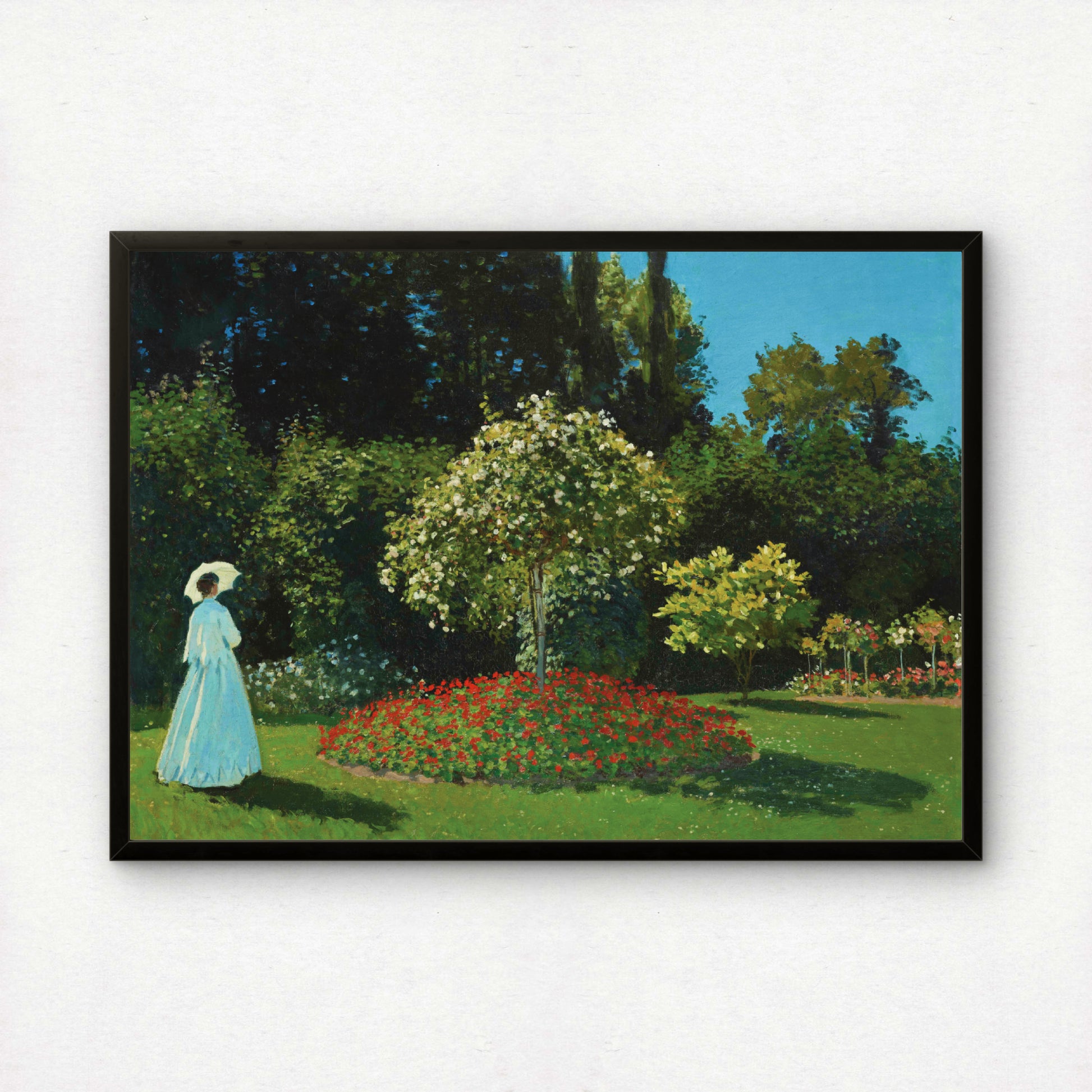 Monet Lady in the Garden Art Print | Giclee Fine Art Reproduction | Impressionist Wall Decor