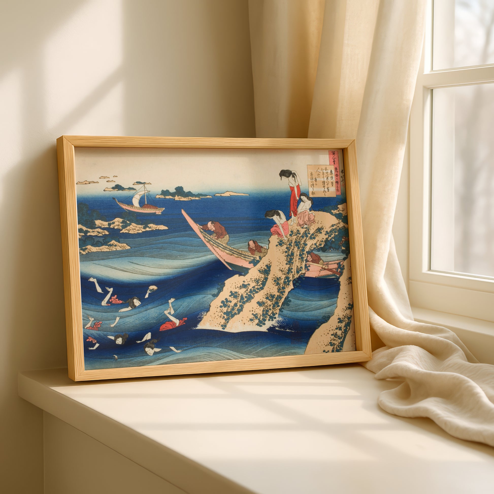 This collection brings together masters who defined different facets of ukiyo-e. Hokusai and Hiroshige transformed landscape printing into high art with their iconic views of Mount Fuji and the Tokaido road. Utamaro elevated the bijin-ga (pictures of beautiful women) genre with his psychologically nuanced portraits, while the enigmatic Sharaku created unforgettable actor portraits during his brief ten-month career. Taito II carried forward Hokusai's legacy after studying under the master himself. Matsumoto Hoji remains a mysterious figure in ukiyo-e history, known primarily for his charming frog prints that appeared in the mass-produced Meika Gafu publication of 1814 - works that embodied the wabi-sabi aesthetic and brought affordable art into countless Japanese homes. Together, these artists represent the golden age of Japanese printmaking - an art form that democratised beauty while achieving extraordinary artistic sophistication.