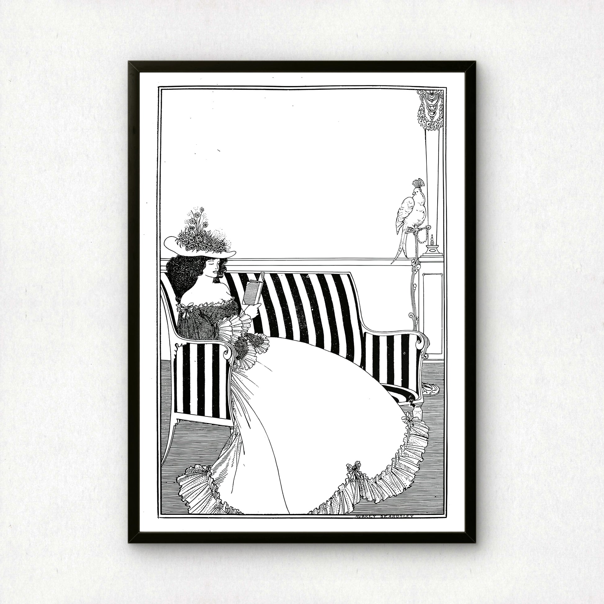 Woman Reading by Aubrey Beardsley | Premium B&W Art Print